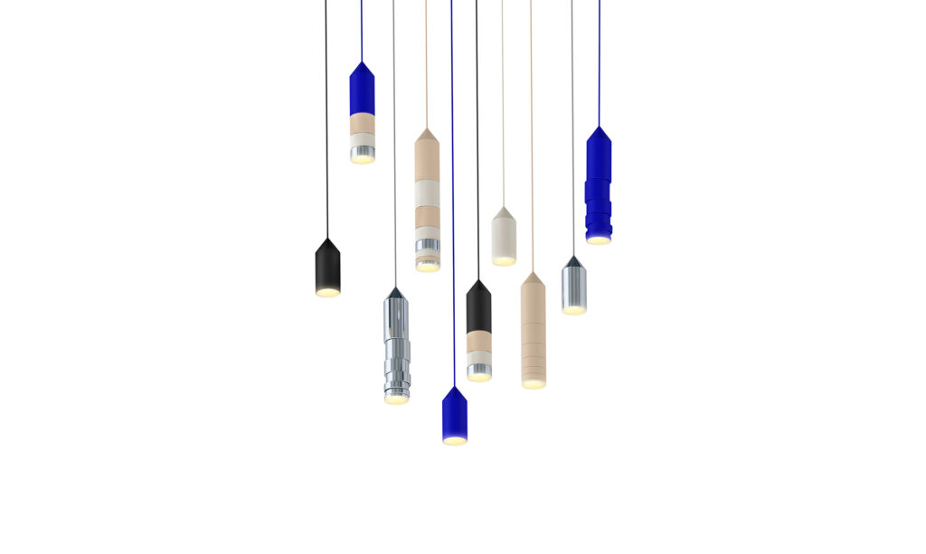 Pendant lamp DANS – Dynamic 1, Extended 42 & Base. Surfaces: Color finish matte and glossy