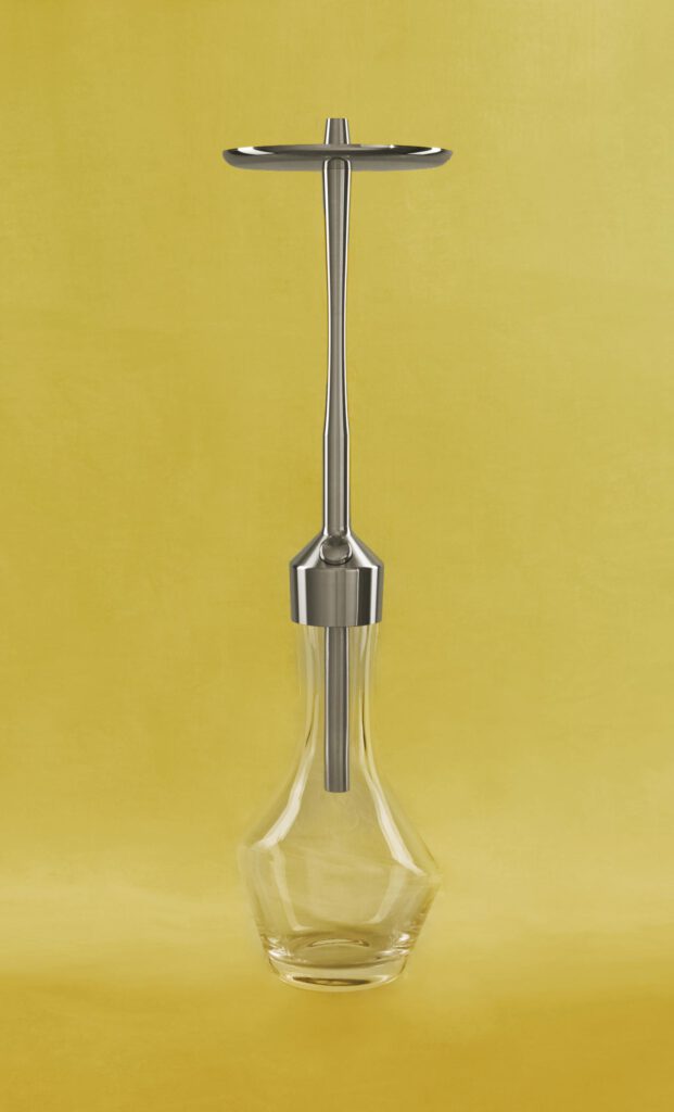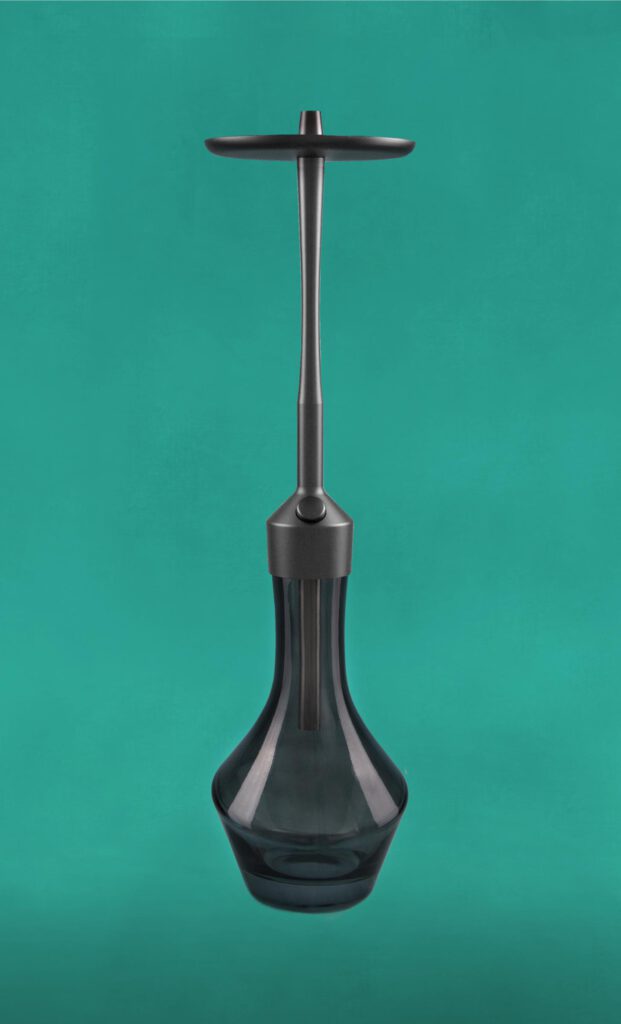 I freshly reinterpreted the old tradition of hookah and adapted it to today’s user, enshape and color: HE – natural aluminum, high-gloss. SHE – Copper-plated aluminum, high-gloss + two-layer tarnish protection. IT – black matt anodized. Also the intensity of the vent on the shisha is adjustable. A rotating vent valve allows the user to rid the shisha of excess smoke to the desired extent.